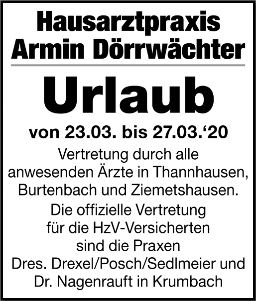 Telefonnummern Vertretungsärzte in Thannhausen:
